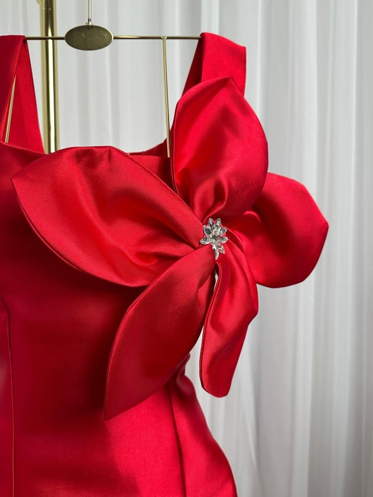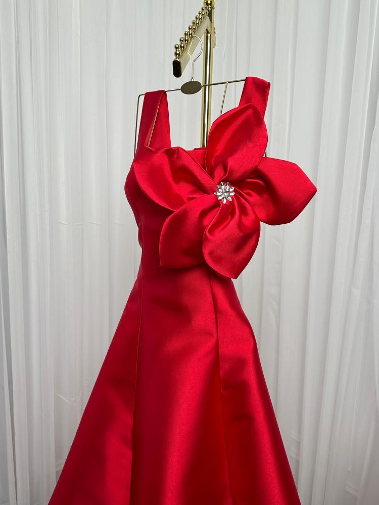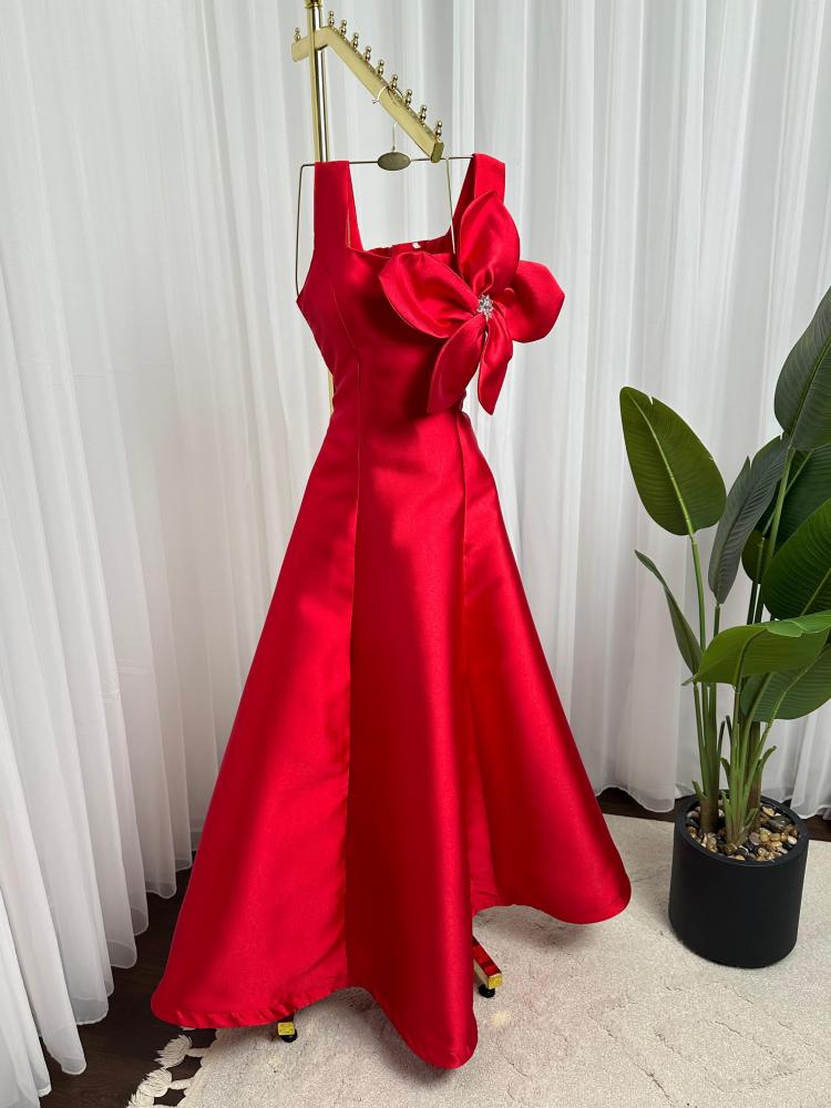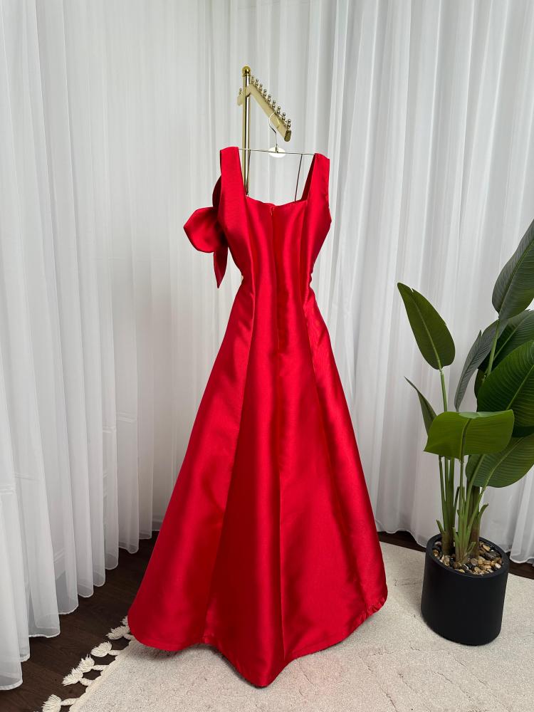 لون الفستان : احمر