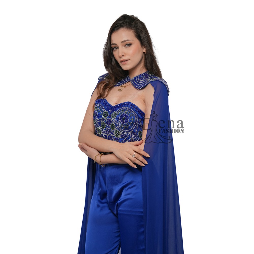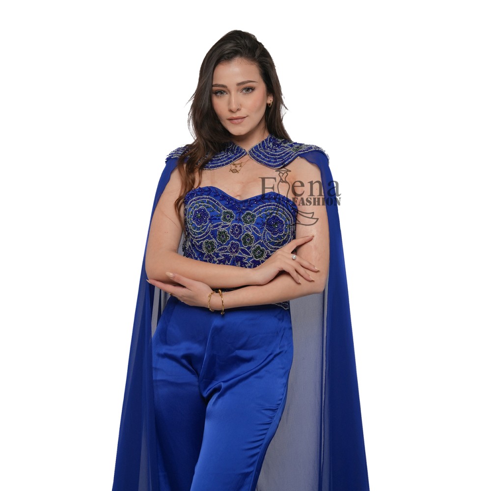 تألقي بإطلالة مميزة مع جمبسوت قمر الليالي بلونه الأزرق السماوي الذي يعكس الهدوء والفخامة. تصميم أنيق ومريح يجمع بين العصرية والكلاسيكية، ليمنحكِ حضورًا يخطف الأنظار. مصنوع من خامات فاخرة تضمن لكِ الراحة والمرونة طوال اليوم، مما يجعله الخيار الأمثل للمناسبات والسهرات.