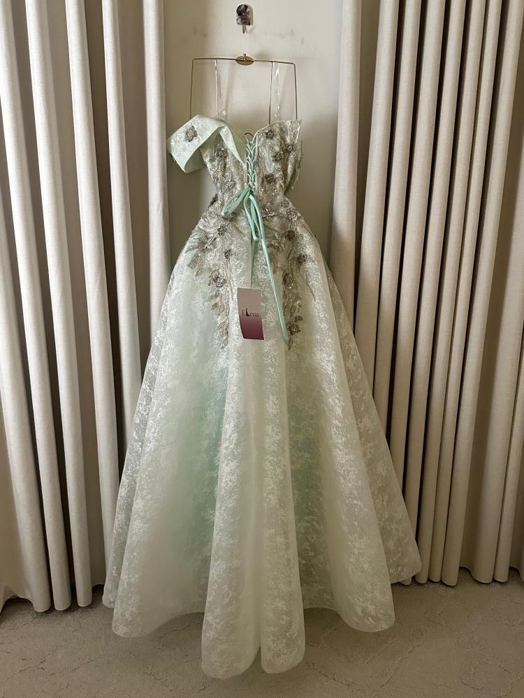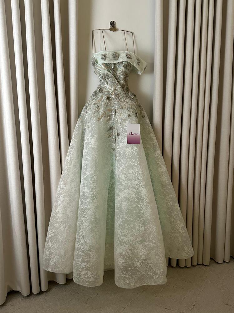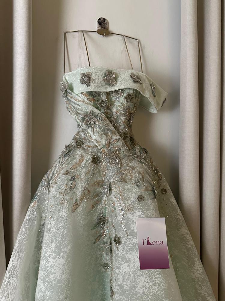 فستان إيفر غلو هو تحفة فنية مبهرة تمزج بين الأناقة الملكية والرقي العصري. صُمم باللون الأخضر الفاتح الممزوج بتطريزات لامعة بأشكال نباتية وزهور أنيقة ليمنحك إطلالة متألقة كأميرة من حكاية خيالية. تصميم الكتف المكشوف يضفي لمسة راقية وأنثوية، فيما تمنح القصة الواسعة للفستان انسيابية ملوكية تعكس فخامة الحضور. إنه الاختيار الأمثل لحفلات الزفاف، السهرات المميزة والمناسبات الفاخرة التي تحتاج إلى إطلالة استثنائية.