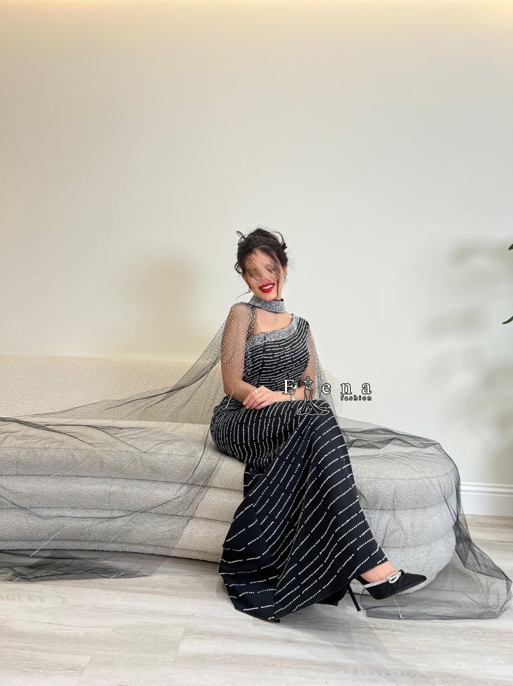 فستان إلين بتصميمه الفريد ولمساته الفاخرة يجسد الفخامة في أبهى صورها. يتميز بتغطية كاملة من التُل المرصّع بفصوص السيلفر المتألقة، مما يمنحكِ إشراقة جذابة مع كل حركة. قصّته الأنيقة وخامته الفاخرة تجعلان منه الخيار المثالي للسهرات والمناسبات الفاخرة، حيث يجمع بين الأنوثة والبريق بأسلوب راقٍ.