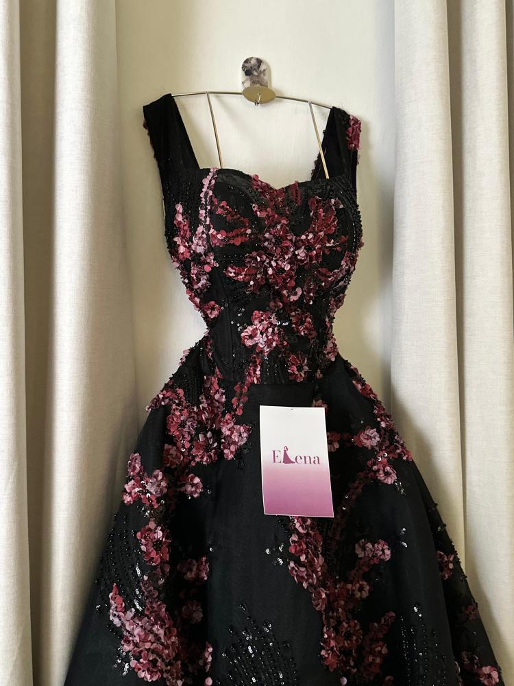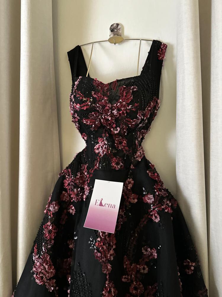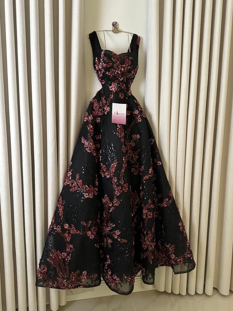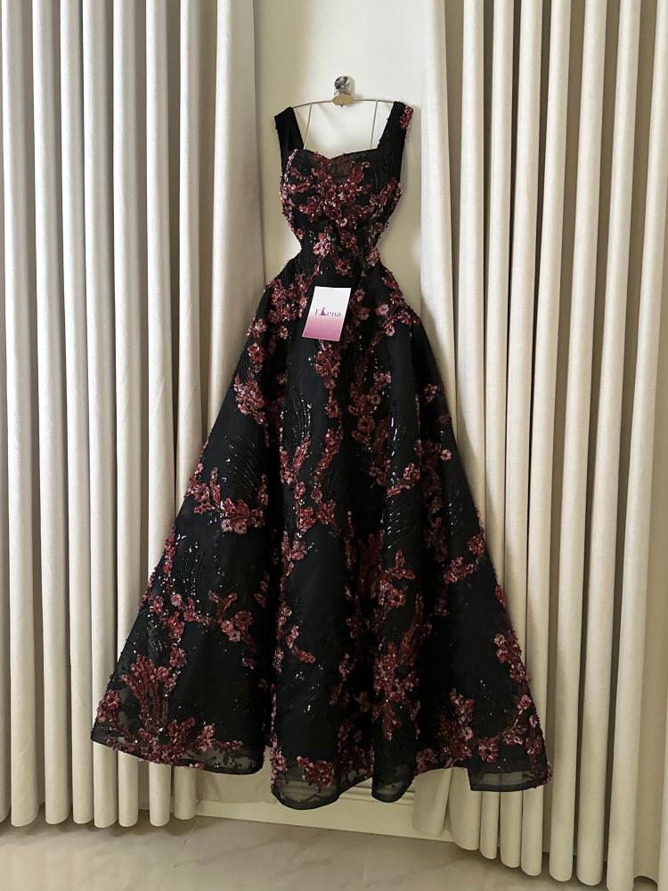 فستان روز نوير هو مزيج من الغموض الأسود والفخامة الملكية المزينة بالزهور الحمراء المطرزة. صُمم ليأسر الأنظار بجاذبيته، حيث يجمع بين قصة ضيقة تُبرز الخصر وقصة واسعة من الأسفل تمنح الفستان حضوراً مهيباً. التطريز اليدوي بتفاصيل الأزهار الوردية-الحمراء يضفي طابعاً رومانسياً ولمسة مترفة، ليجعلك تتألقين في المناسبات الكبيرة، حفلات السهرة، وحفلات الزفاف. هذا الفستان ليس مجرد قطعة ملابس، بل لوحة فنية حية تعكس الأنوثة والقوة معاً.