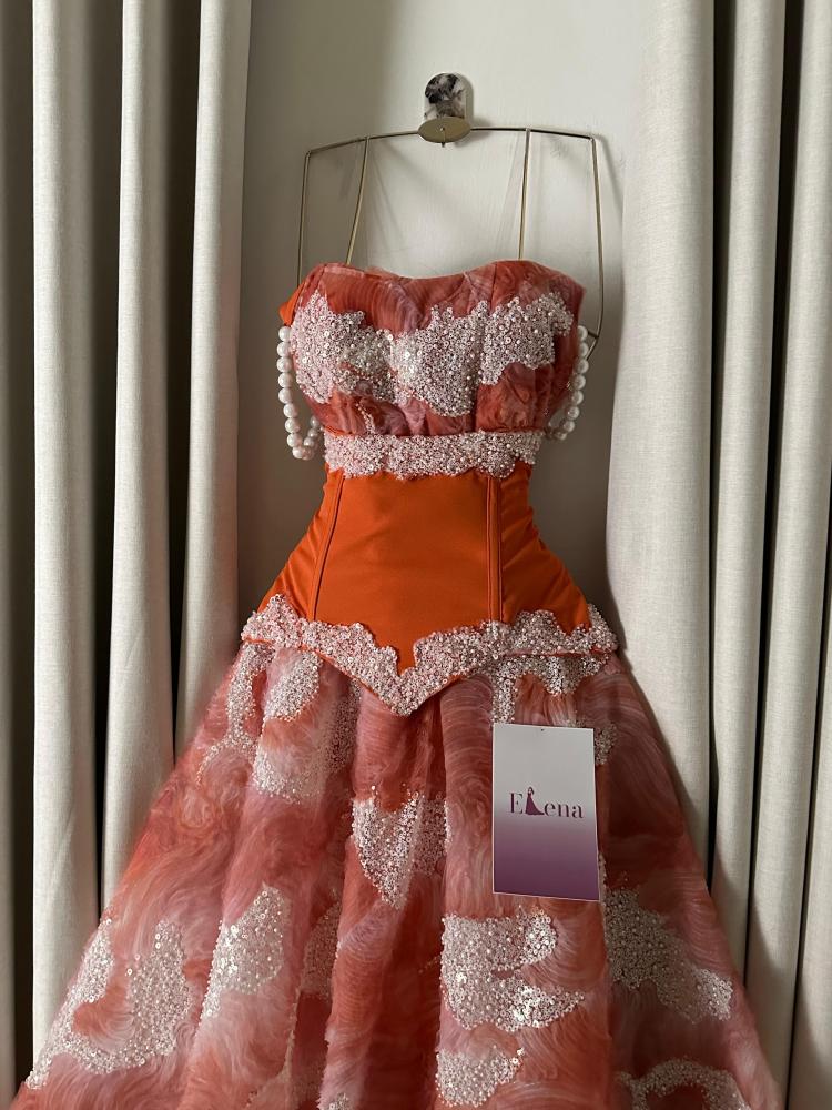 فستان كورال برنسيس هو تحفة فنية استثنائية تجسد التوازن بين الفخامة والجرأة. بتصميم عصري مستوحى من الأناقة الملكية، يجمع بين الكورسيه الضيق باللون البرتقالي الحيوي الذي يبرز جمال الخصر ويمنح القوام مظهراً ممشوقاً، بلون الكورال الوردي الممزوج بتفاصيل بيضاء لامعة تمنح الفستان طابعاً حالماً.