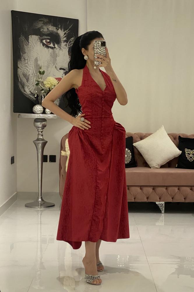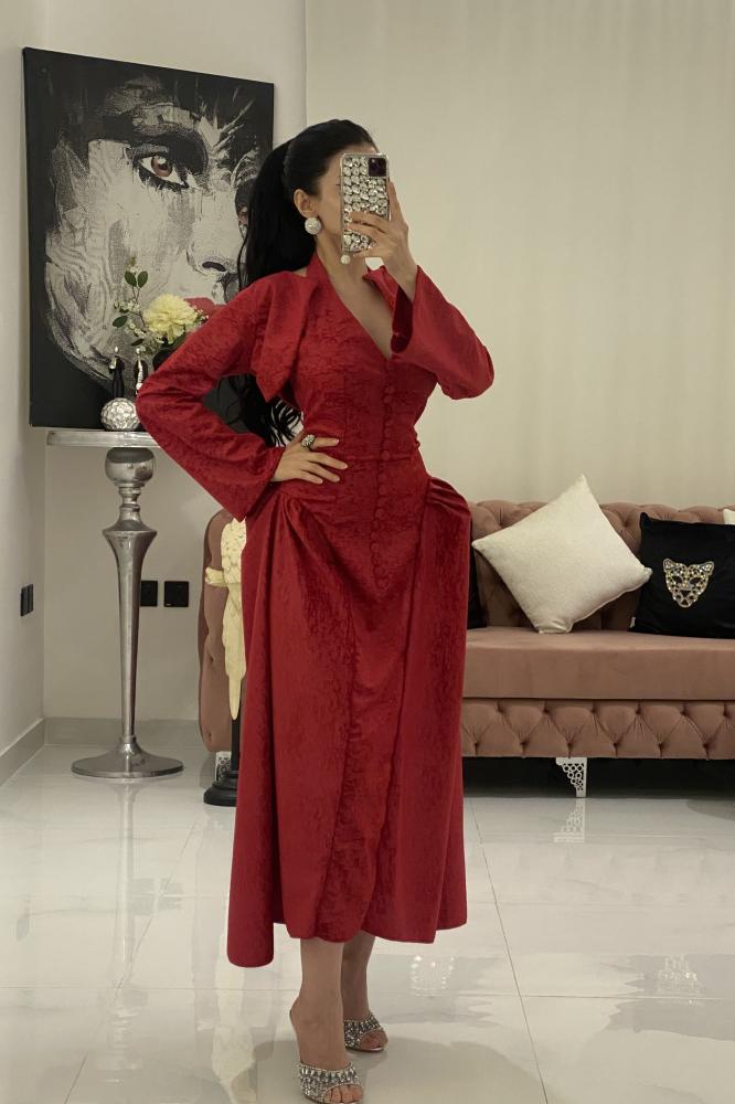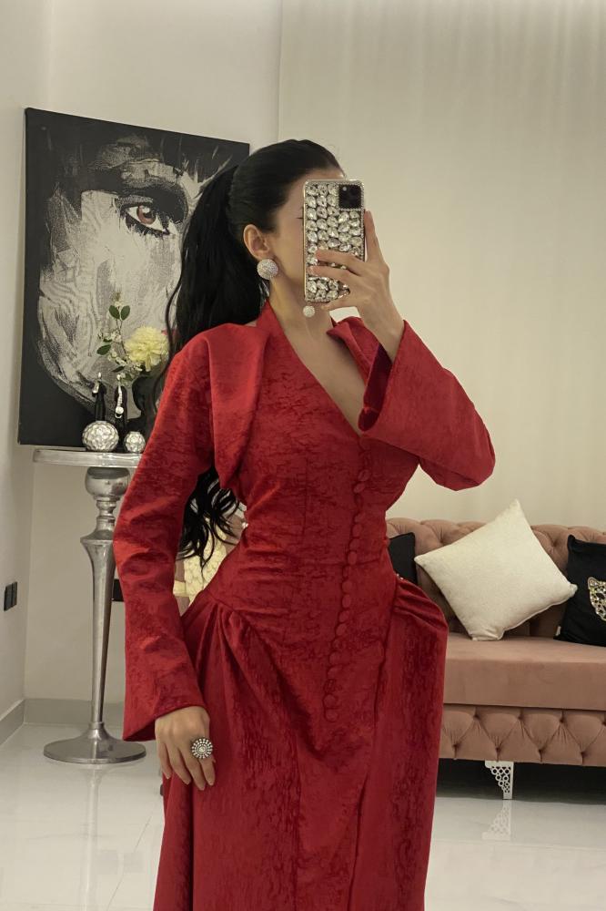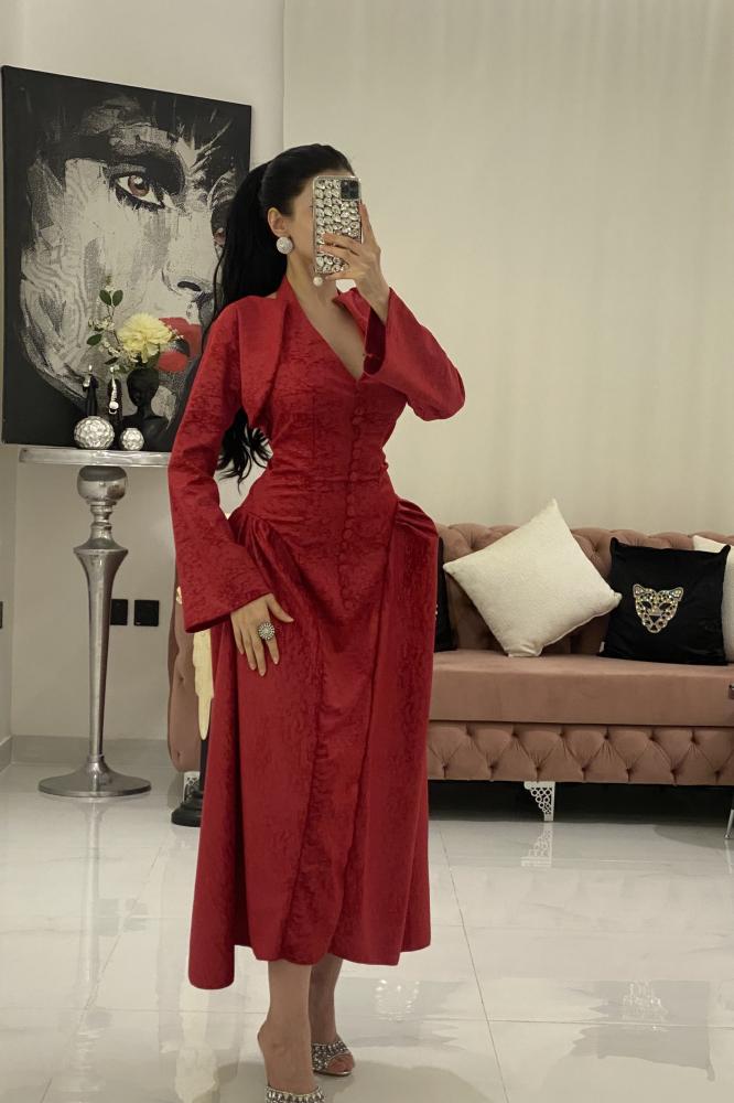 تألقي بإطلالة راقية مع فستان “إيليت روج” المصمم بأسلوب يجمع بين الفخامة والأنوثة. يتميز بقصة أنيقة مع تفاصيل أزرار أمامية، . يأتي بتصميم متعدد الاستخدامات. جمال القوام مع إمكانية ارتدائه بدون الأكمام لإطلالة مسائية جريئة أو بالأكمام الطويلة لمظهر أكثر كلاسيكية. مصنوع من قماش فاخر بنقشة أنيقة، ليمنحك لمسة ساحرة في كل مناسبة