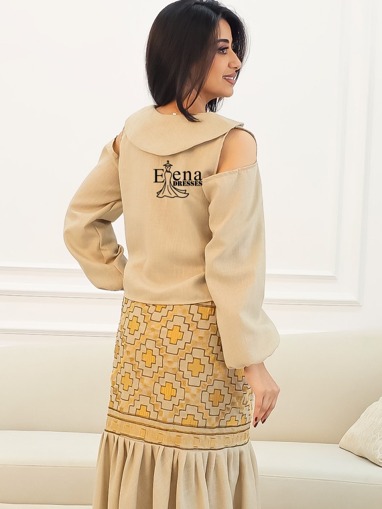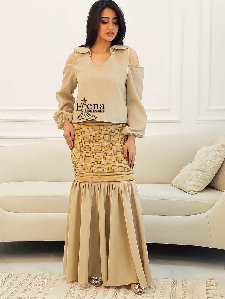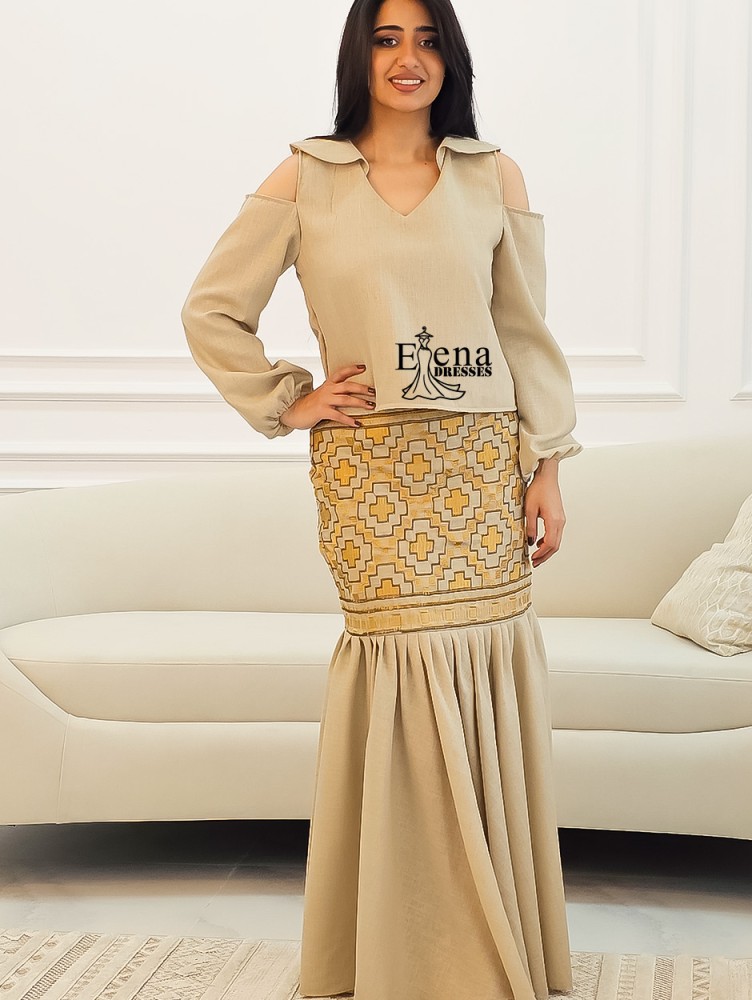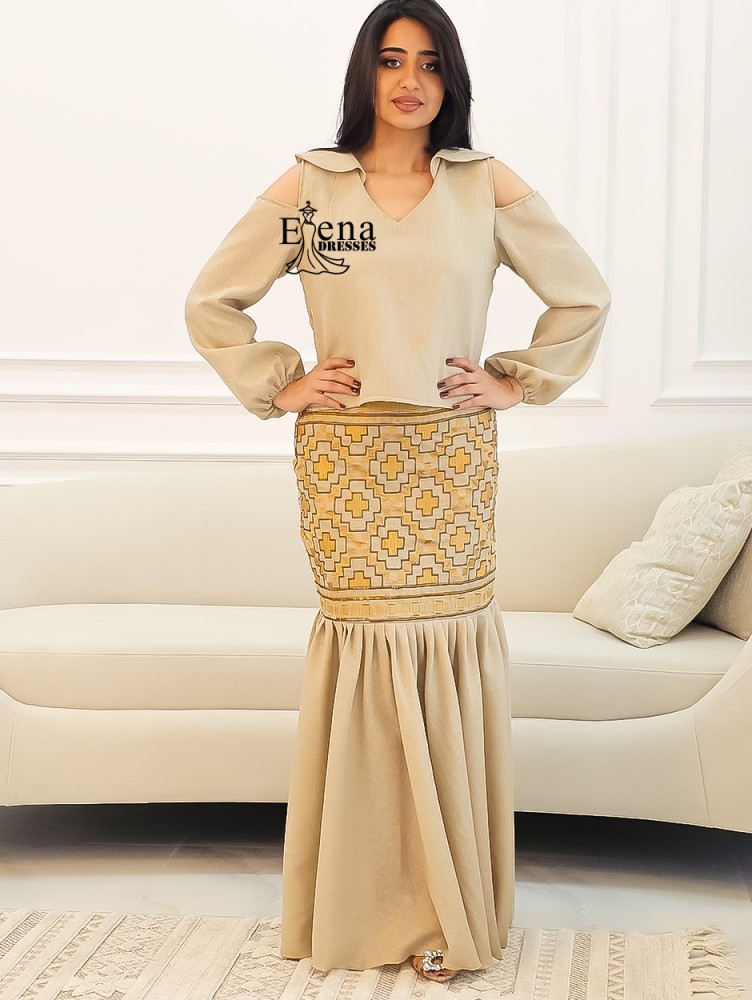 لون الفستان : بيج